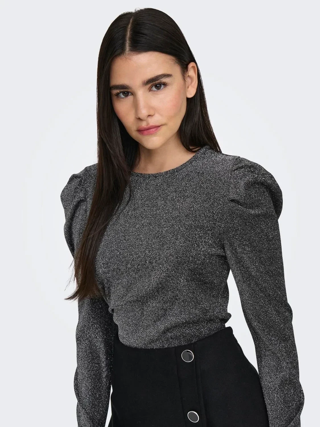 ONLY Onlrich l/s Glitter Puff top Jrs Cleamtis Silver Glitter 15278055