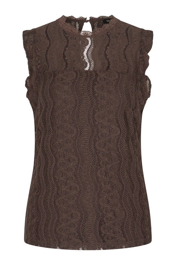 Mi Piace Top mouwloos Kant brown MP202486