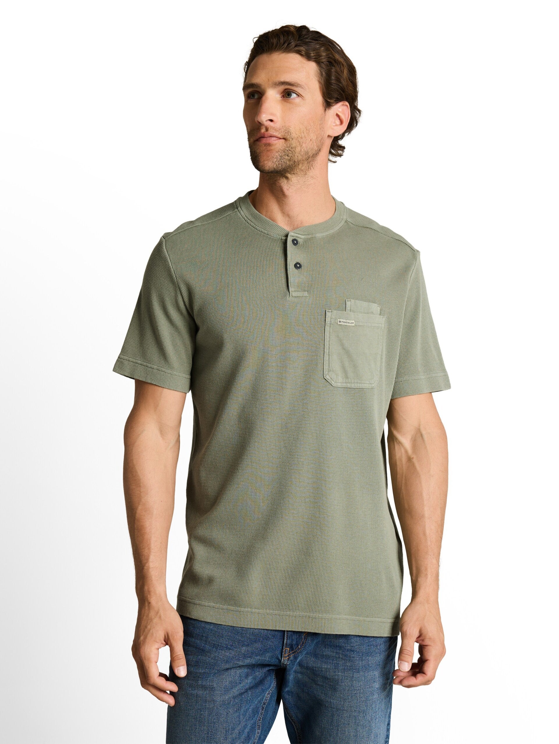 Tom Tailor henley t-shirt heren groen – korte mouw | Vanelleswat
